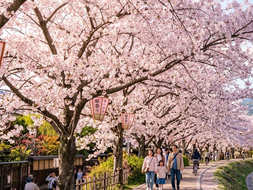 ホテルから歩いて約20分、車で約5分の場所にあるみつわ台駅周辺の桜並木で毎年開催されているイベントです。