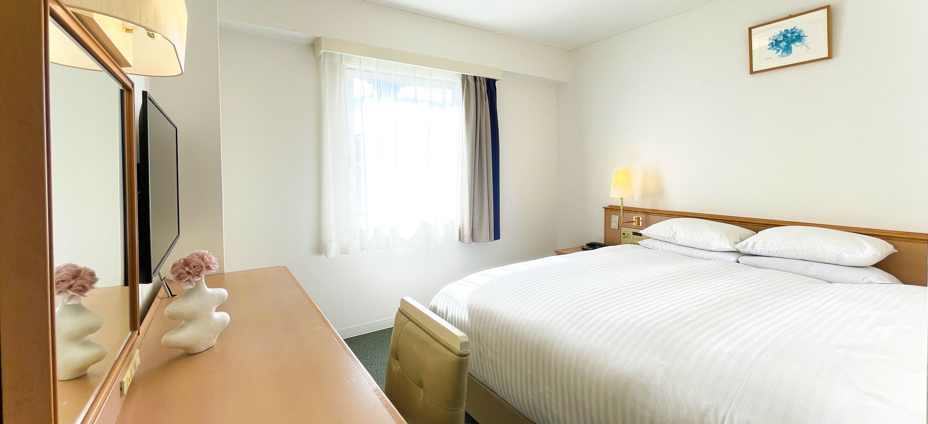 様々なニーズに合わせてご利用頂ける機能的なお部屋です。広さ 13.7平米 ベッドサイズ 1100×1950(mm) アメニティ 共通(ページ下部記載) -