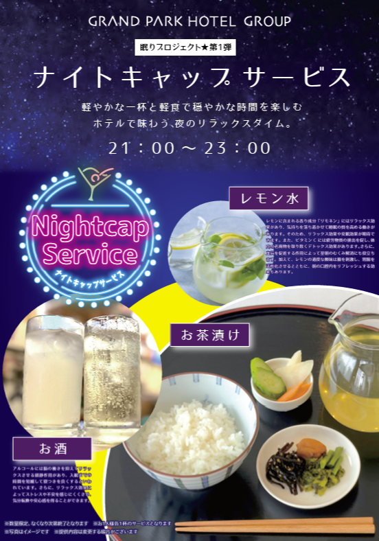 ●提供サービス:お酒/お茶漬け(数量限定)/レモン水/お菓子
