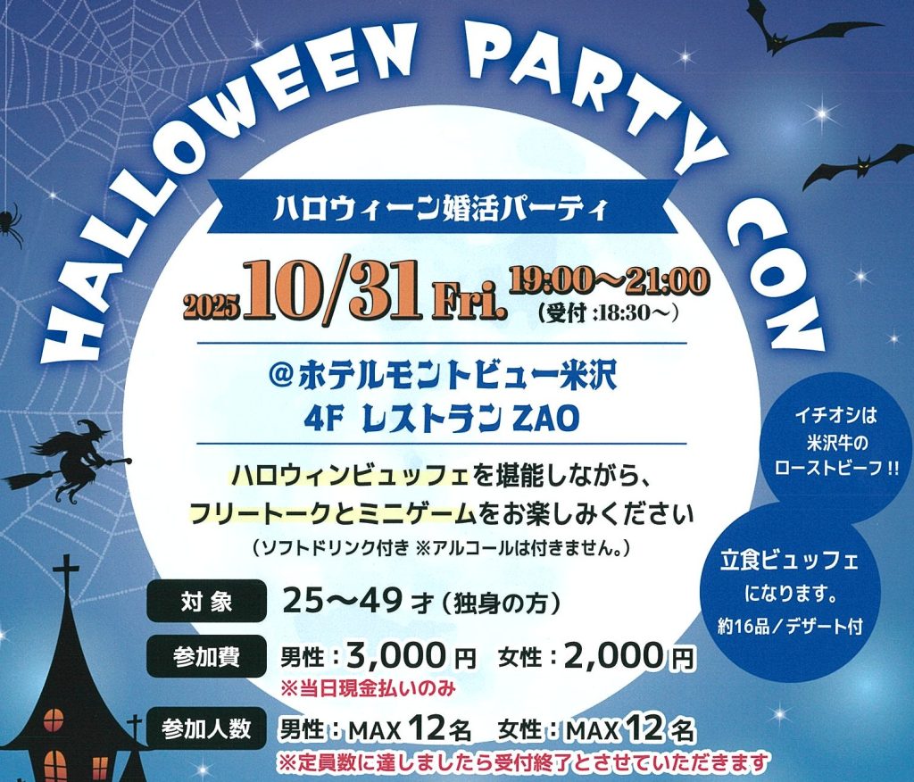 ハロウィン仕様のレストランでおいしいお料理と新しい出逢いと楽しい時間をお過ごしください