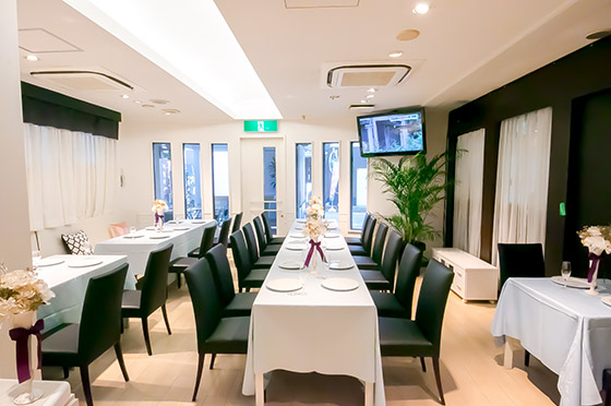 ディナーは10名様より、着席時は最大28名様まで、立食時は最大40名様まで貸切可能。大型テレビ・DVDプレーヤー完備で、スポーツ観戦をしながらのお食事やムービーを流したいパーティーにピッタリ♪